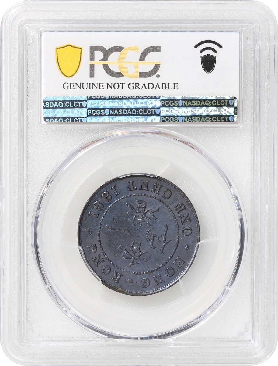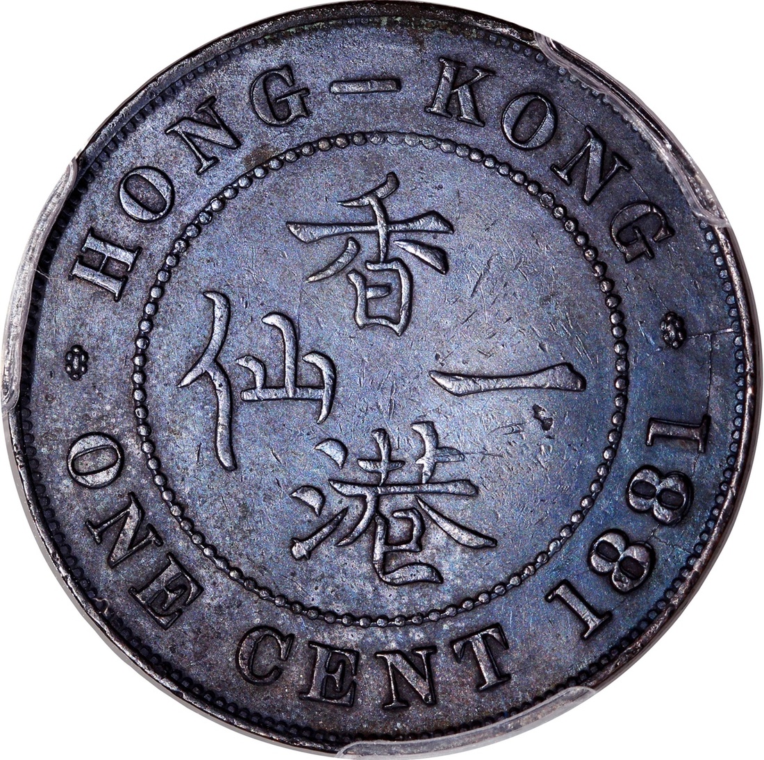 Hong Kong, bronze 1 cent, 1881, PCGS Genuine Cleaned - AU Detail, #42016920, beautiful blue toning, lovely