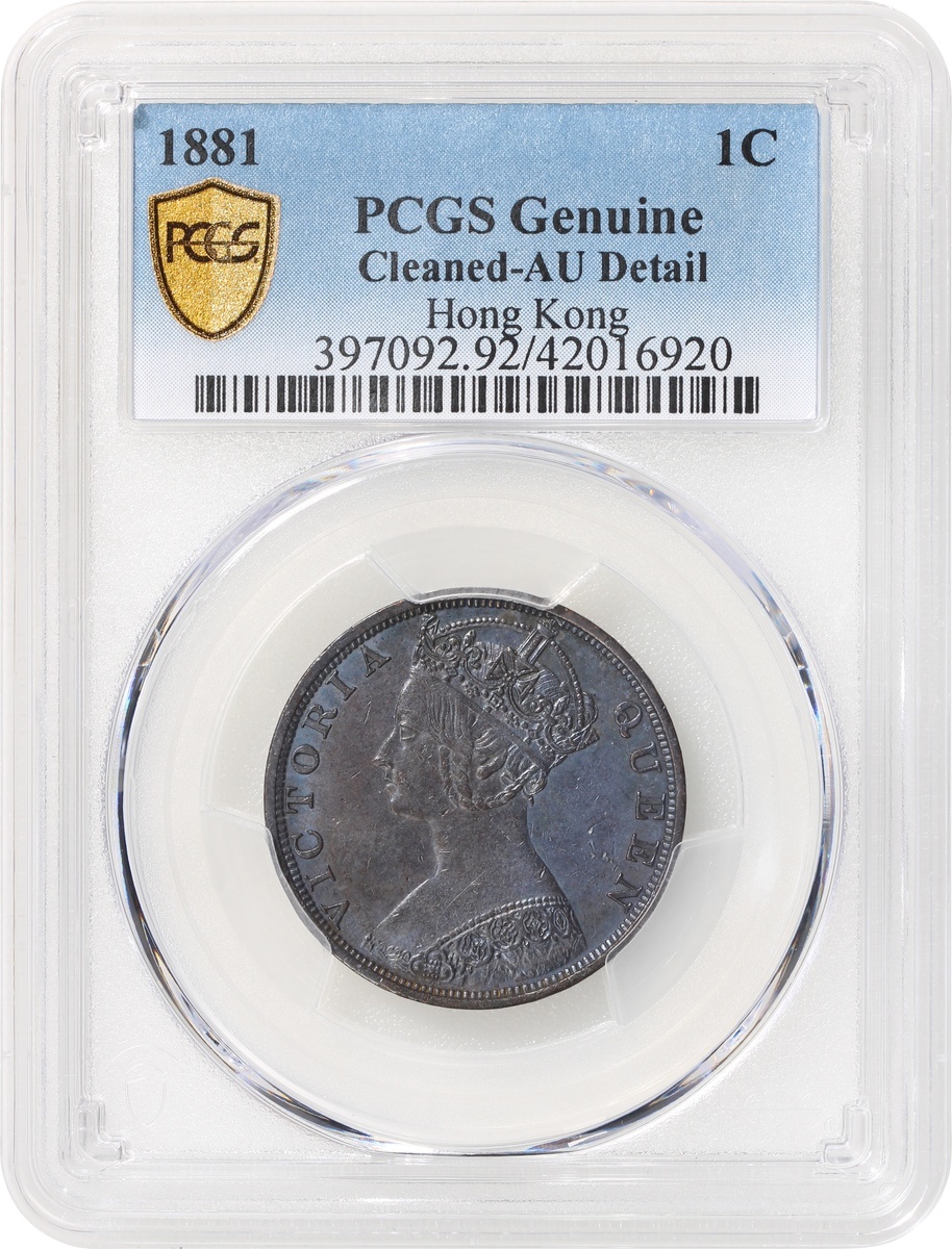 1981年香港1仙,PCGS AU Detail,有清洗,編號42016920,藍調包漿,罕見美品