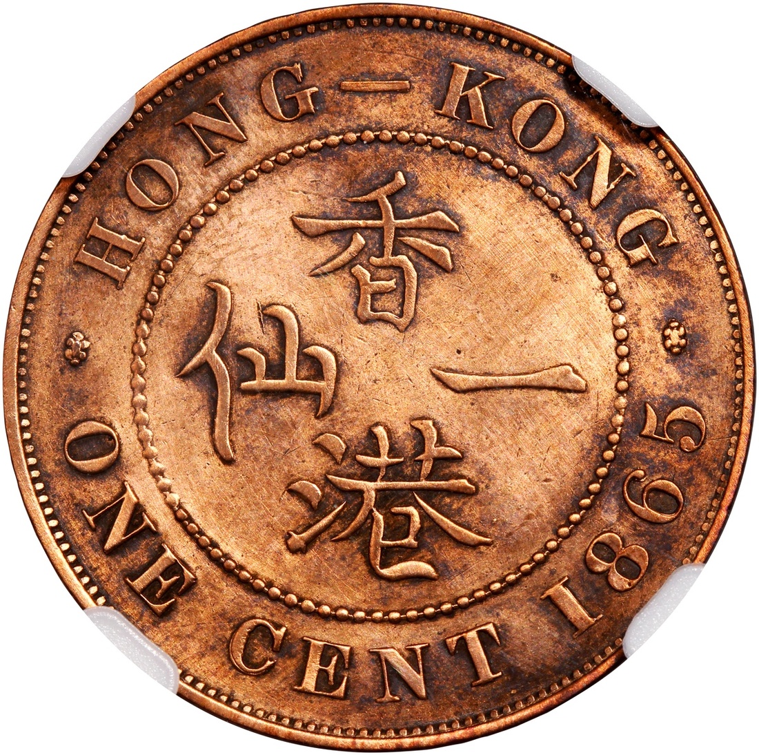 香港錢幣一組3枚,包括1865年1仙,及1994及1997年1毫,首枚評中乾XF,其餘2枚PCGS UNC Detail(機件損害),及 UNC Detail(有環境損害),編號82010321/92,41296685 及41296684