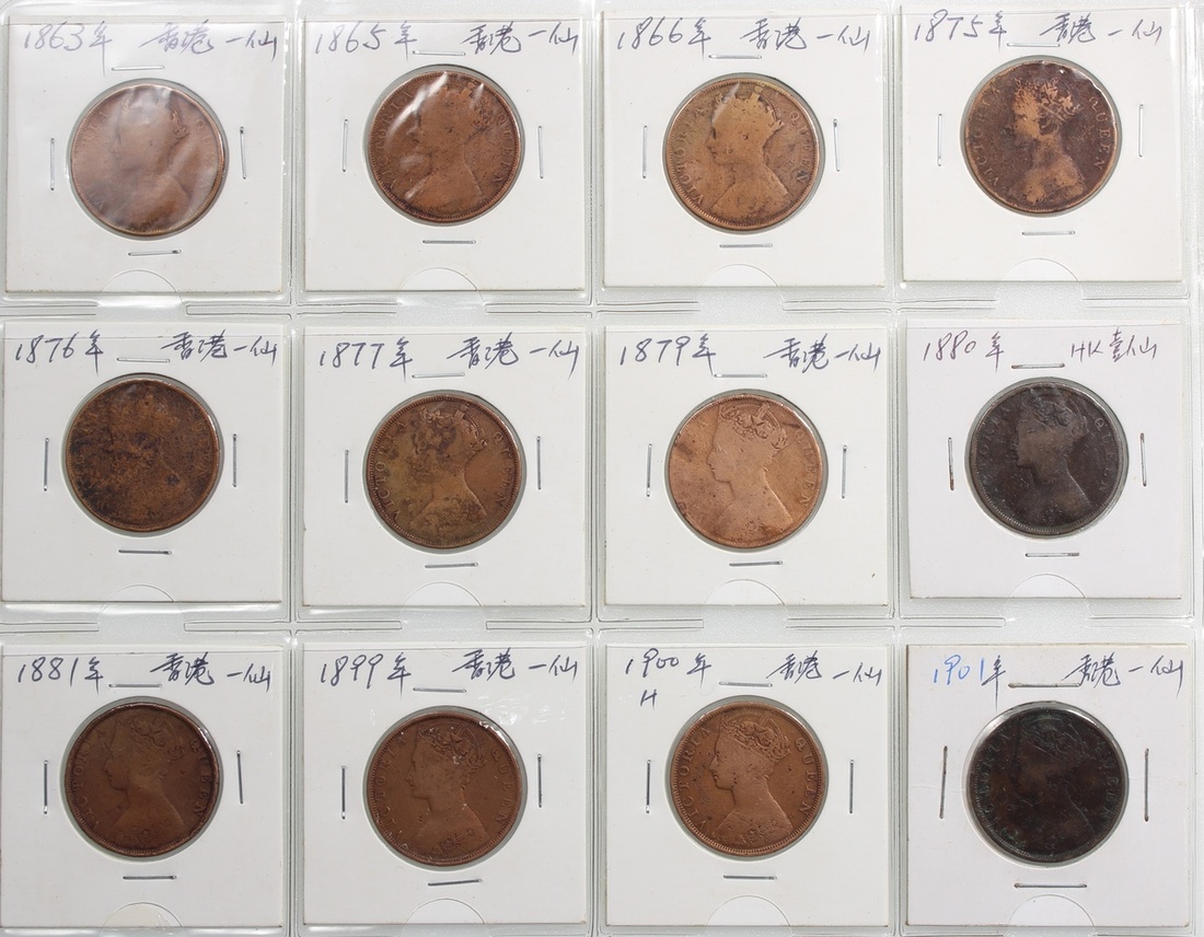 1863-1901年香港1仙一組12枚,GF至VF,建議預覽
