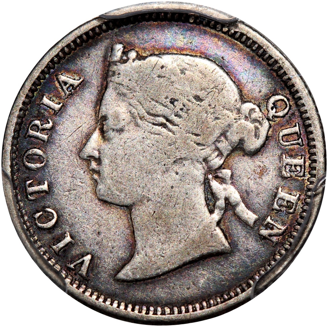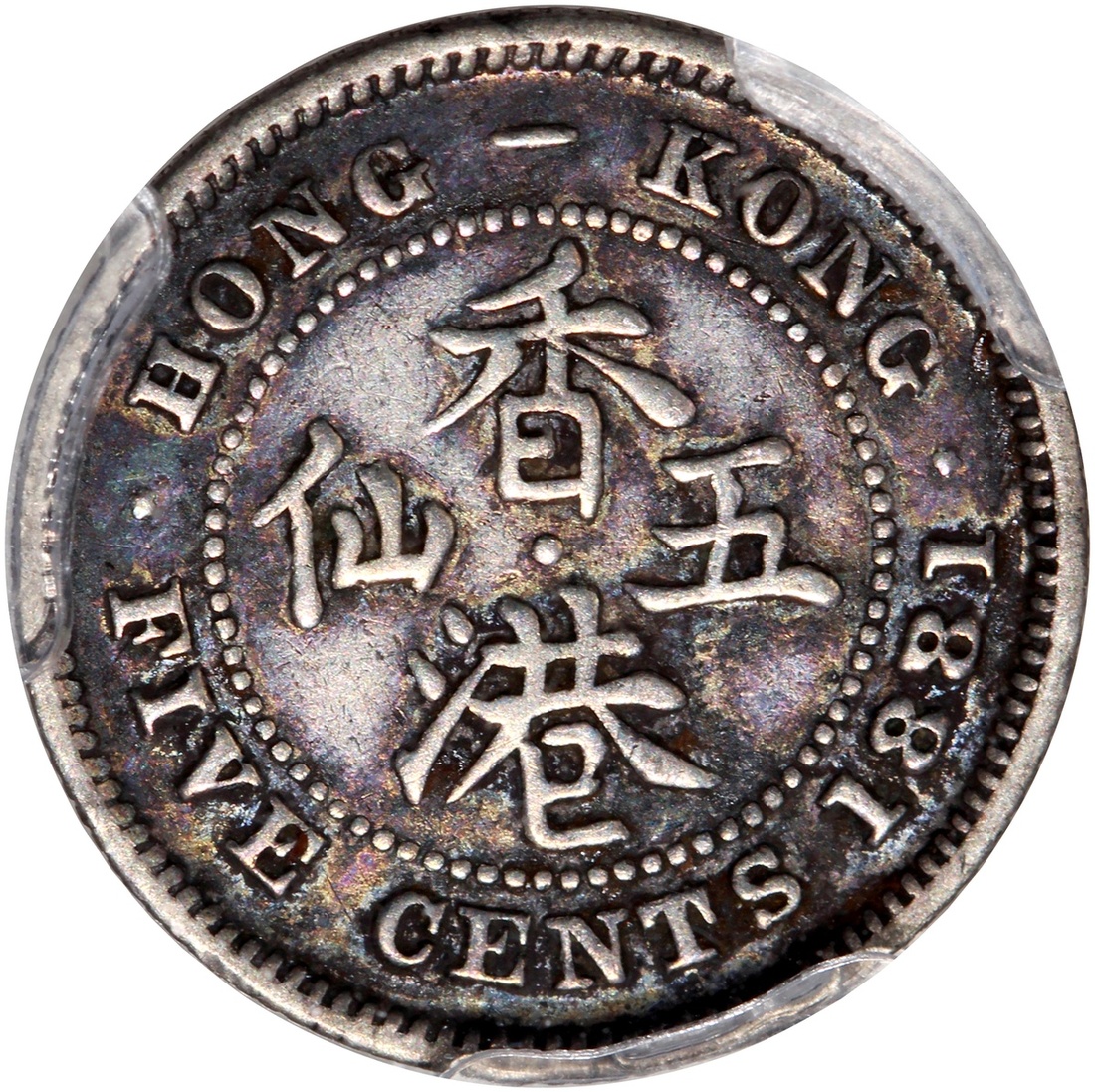 Hong Kong, silver 5 cents, 1881, 81 over 71 variety, Victoria on obverse, PCGS F15. #39789600