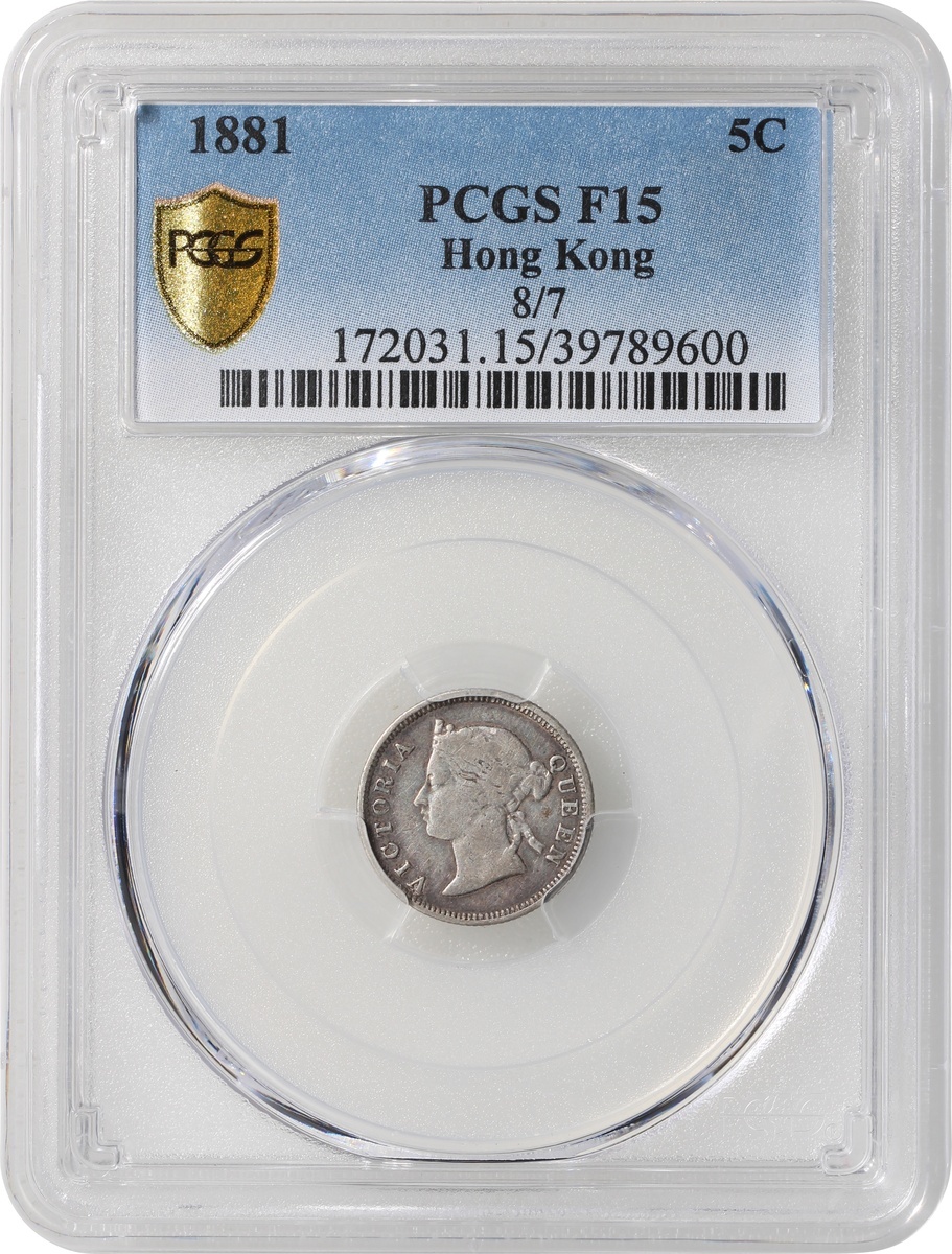 1881年香港5仙,騎字版,PCGS F15,編號39789600