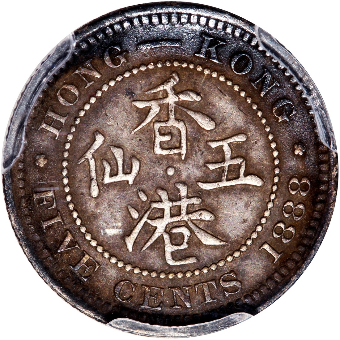 1888年香港5仙,深色包漿,PCGS 真品,有損,編號80796082