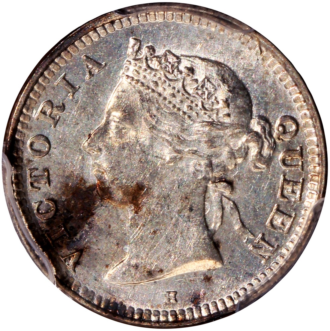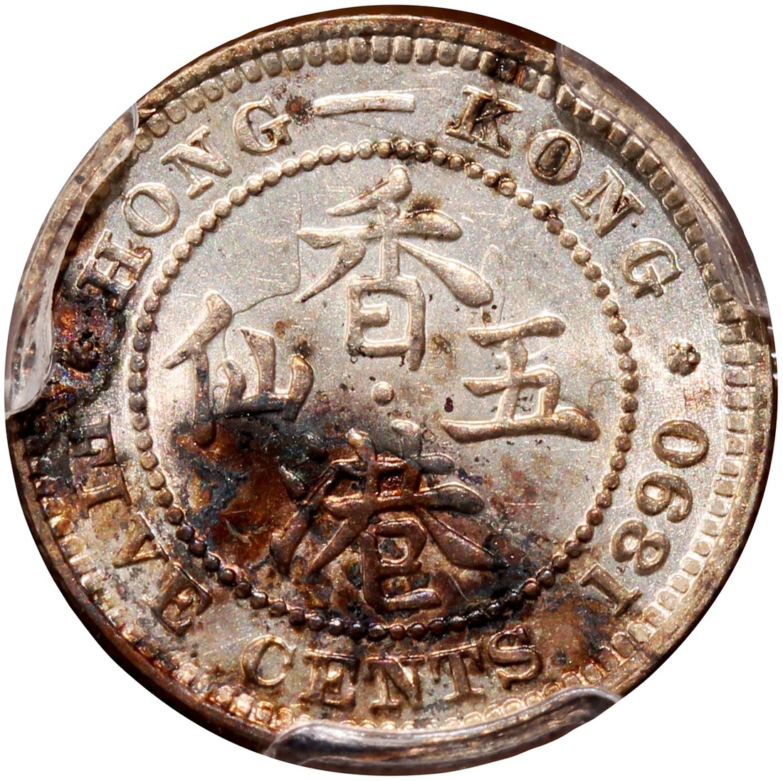 Hong Kong, silver 5 cents, 1890-H, PCGS Genuine Environmental Damage - UNC Detail, #42174814.