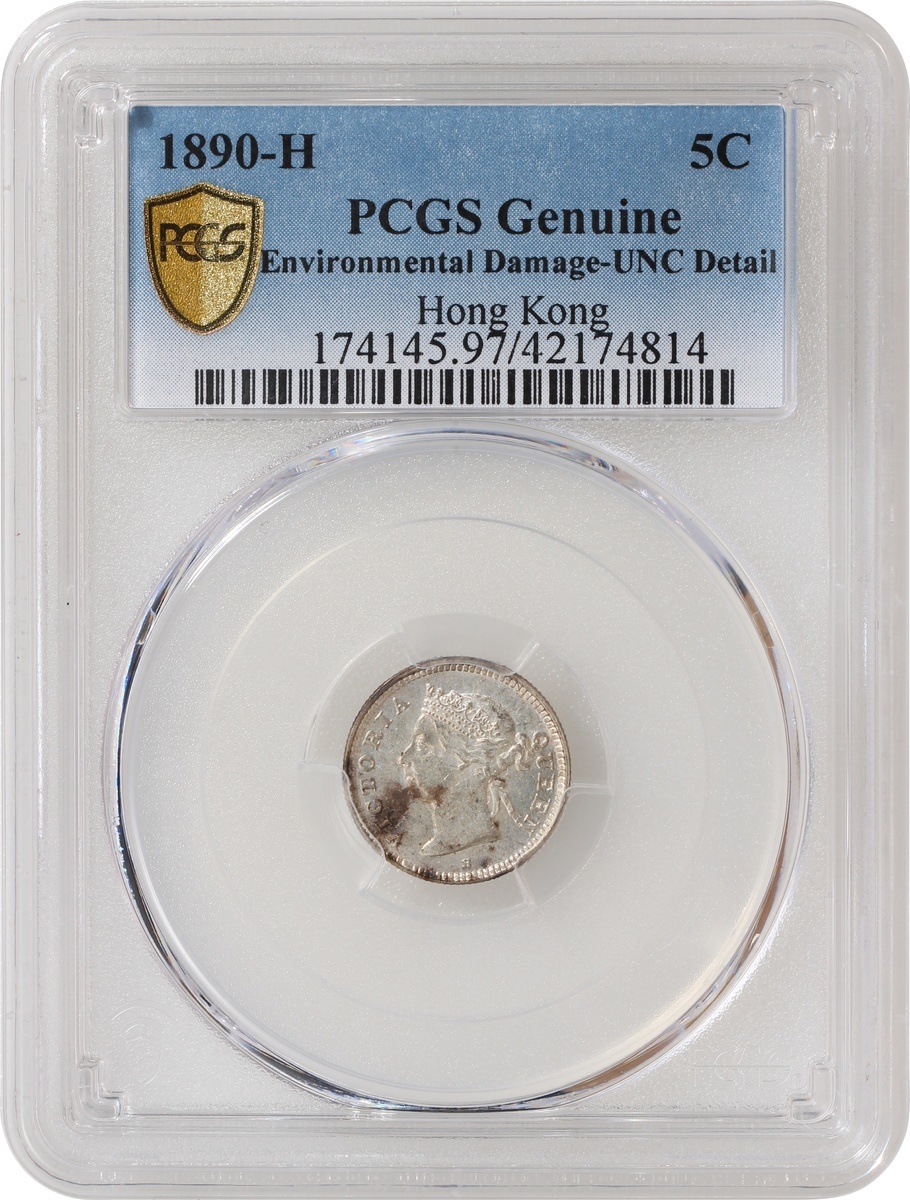 1890-H香港5仙,PCGS UNC Detail,有環境損害,編號42174814