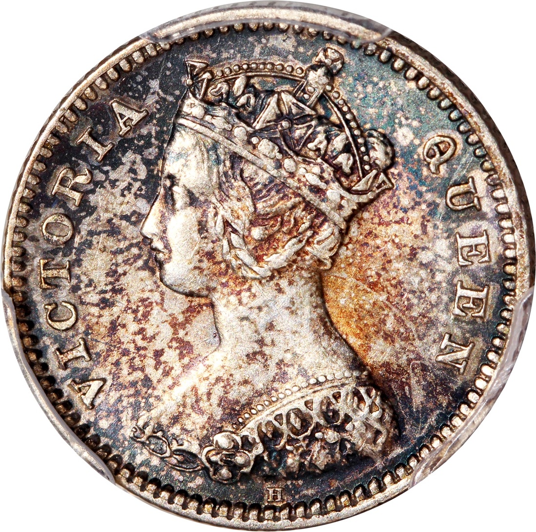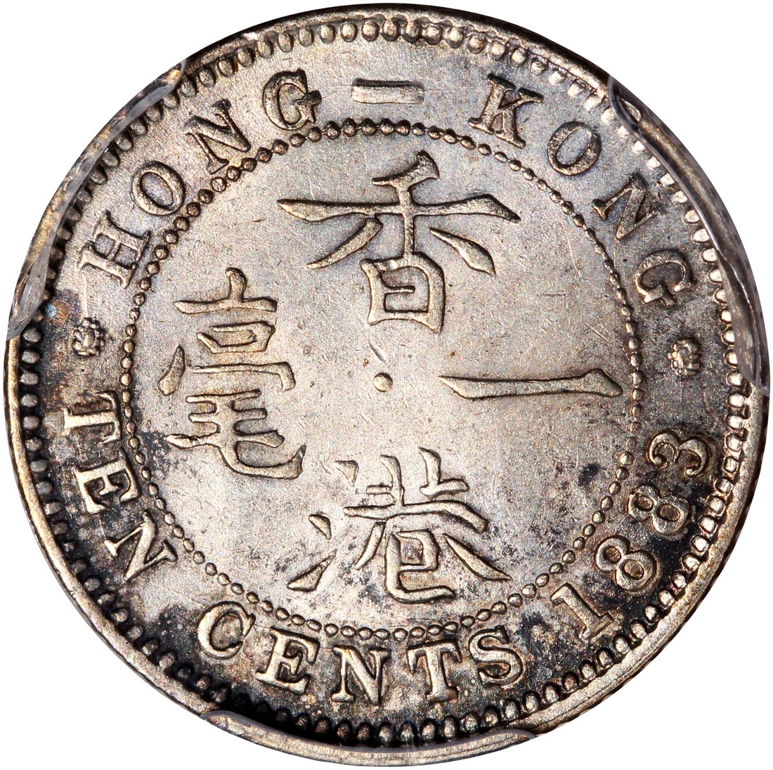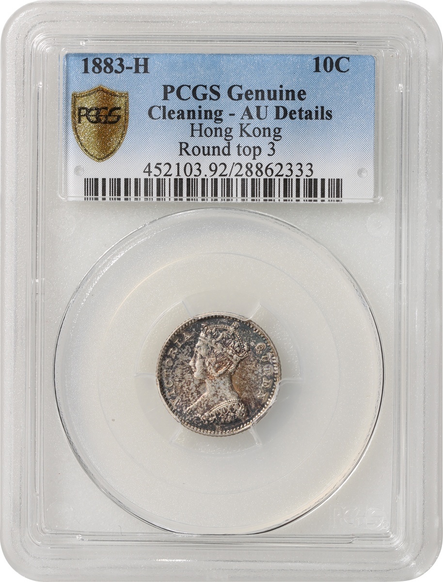 Hong Kong, silver 10 cents, 1883-H, round top 3, Victoria on obverse, PCGS AU Detail, cleaning. #28862333