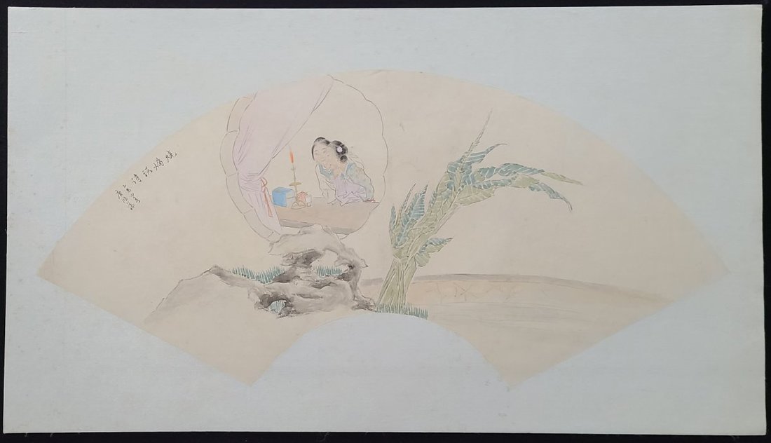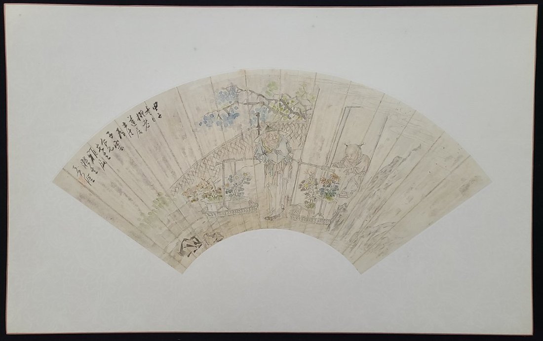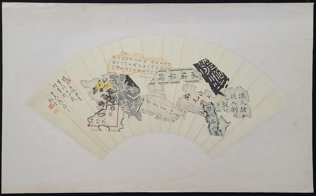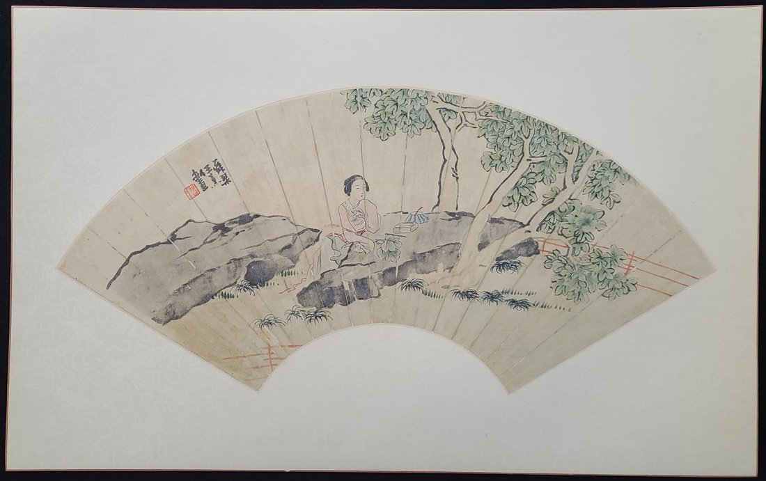 1900-1960s Chinese painting on fan and fruit with bird painting, total 10 pieces. Fan size: about 23x53cm each, painting size: 27.5x33.5cm