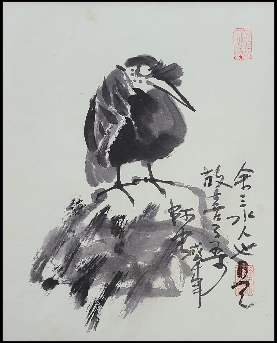 1970-80年代阿虫水墨畫 "余三水人也" 鈐印两枚"蛀米大蟲", 其一為到蓋. 己裱, 畫幅尺寸:23x28cm