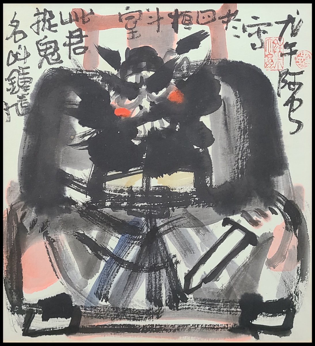 1970-80s A Chong's Ink Painting "This man catches ghosts and is called Zhong Kui", with two seals. Mounted, painting size: 24x26.5cm