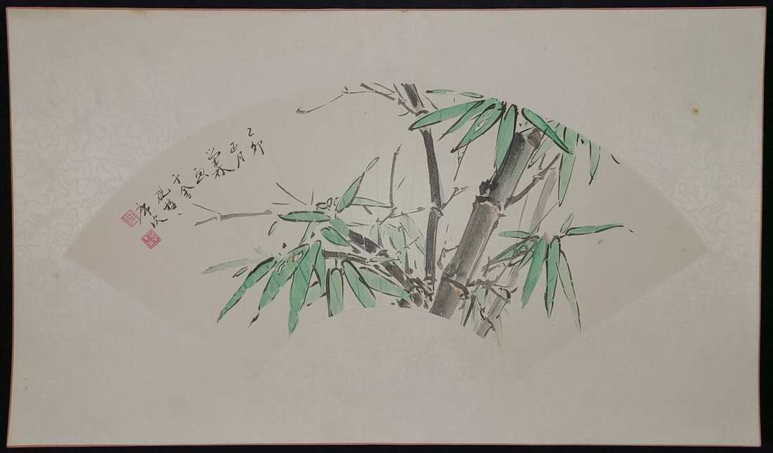 Chan Wing Sum "Green Bamboo" on fan. Painted in 1975. Painting size: 24x52.5cm