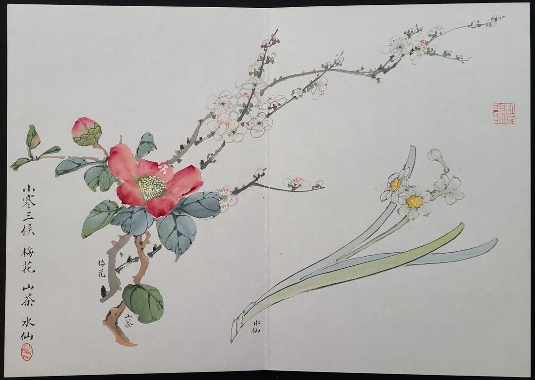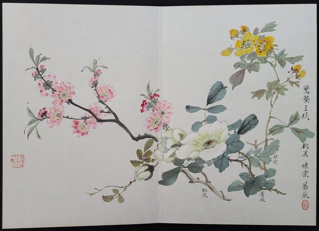 Chen Lin (1914-2002) "Twenty-four kinds of flowers in different seasons" painting album. Painted in 1975, accordion binding. Album size: 26.8x38.5cm, painting size: 37.8x53cm