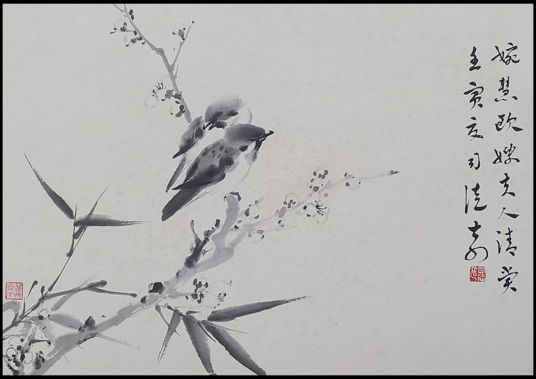 司徒奇(1904-1997) 紙本水墨花鳥畫鏡心两幅; 1/ 款式: 司徒奇, 鈐印: "司徒奇" 2/ 款式: 婉慧嫂夫人清賞?寅 (1938)夏司徒奇. 鈐印: "司徒奇". 畫幅尺寸: 28.5x40.5cm