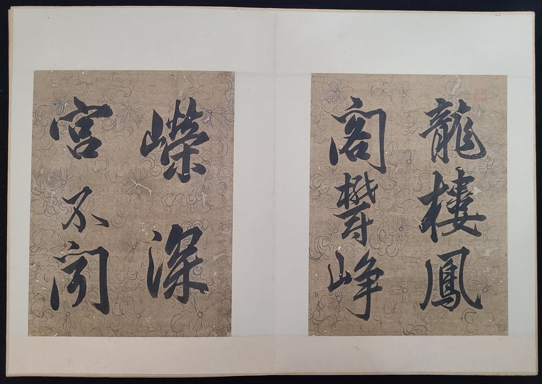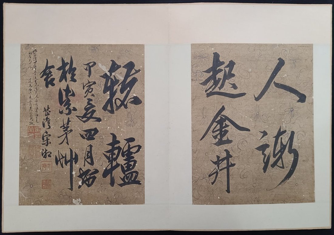 宋湘 1956-1826 (款)法書一帖, 錦面經折裝, 內裱書法八幅有道光丙戍年(1826)吴榮光跋. 書法尺寸: 22x29cm