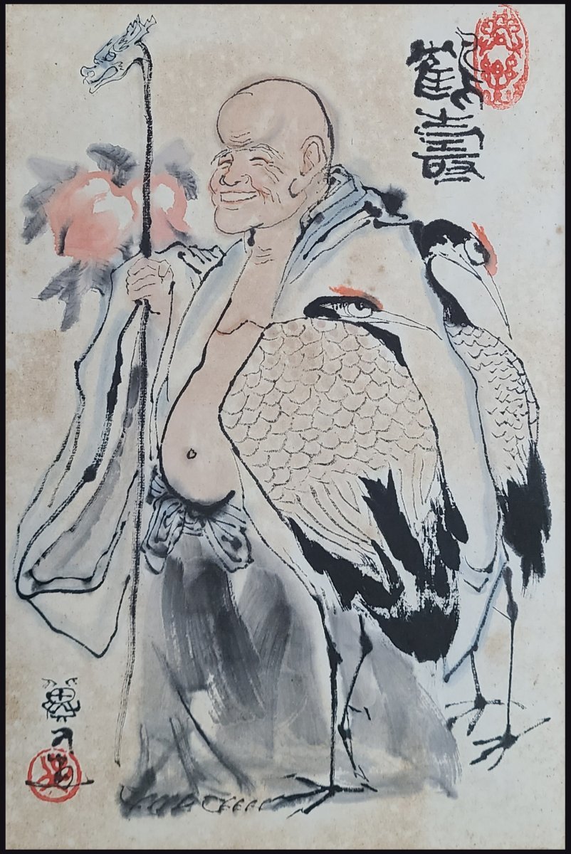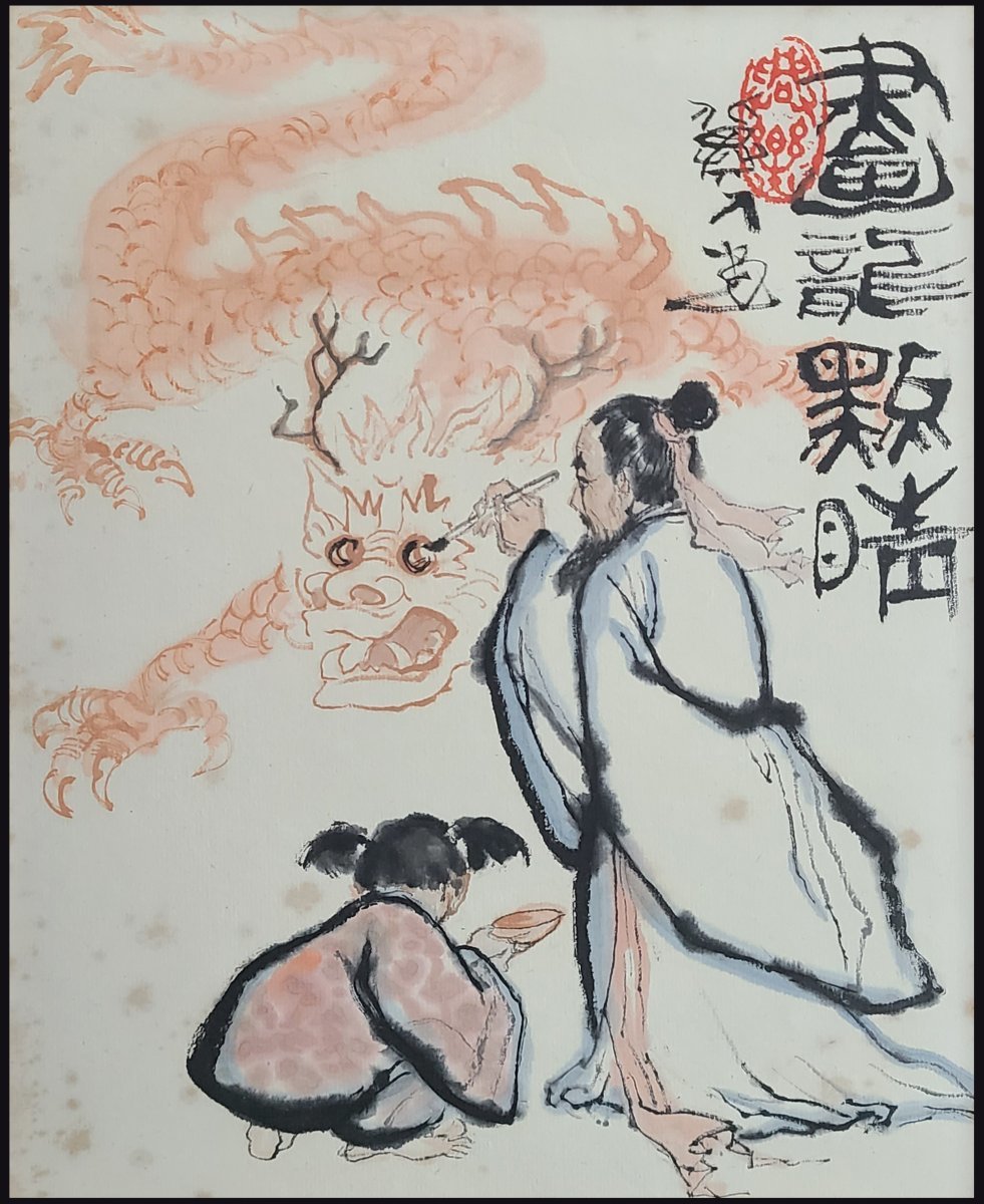 吴曾亮人物畫三幅, 鏡心, 紙本設色; 題式:1/ "畫龍㸃晴 冀人畫" 2/ "鶴夀 冀人畫 ", 3/ "和平 冀人", 分別鈐印 "吳", "曾", "興樂". 畫面尺寸: 每幅約21x27cm.