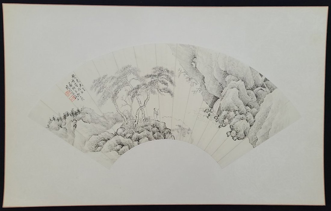 Xu Shi Heng, landscape painting on fan. Painting size: 23x52cm