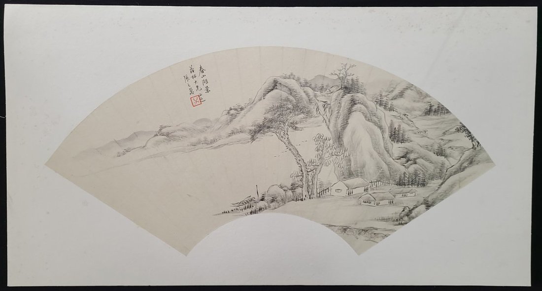 Zhang Zhi Wan (1811-1897) "Landscape painting on fan" Painting size: 23.5x53cm