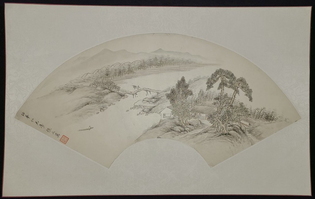Zhang Zhi Wan (1811-1897) "Landscape painting on fan" Painting size: 26x56cm