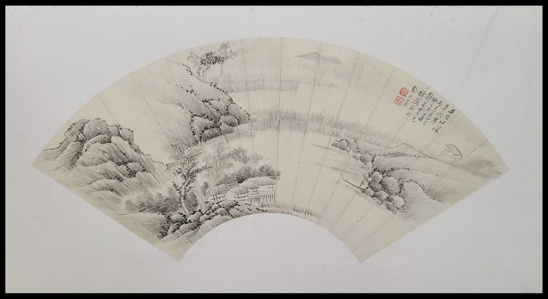 Zhang Zhi Wan (1811-1897) "Landscape painting on fan" Painting size: 26x56cm