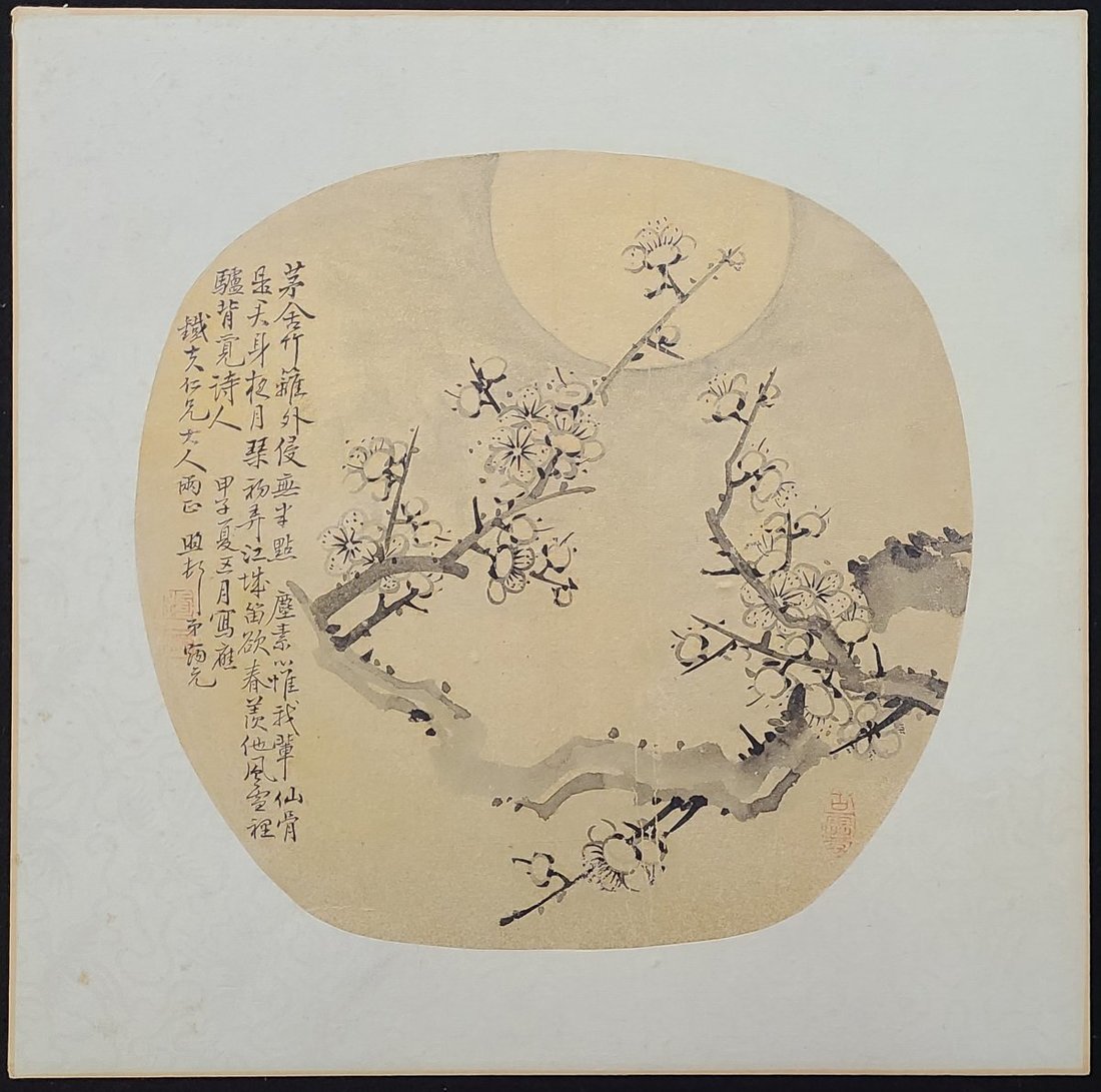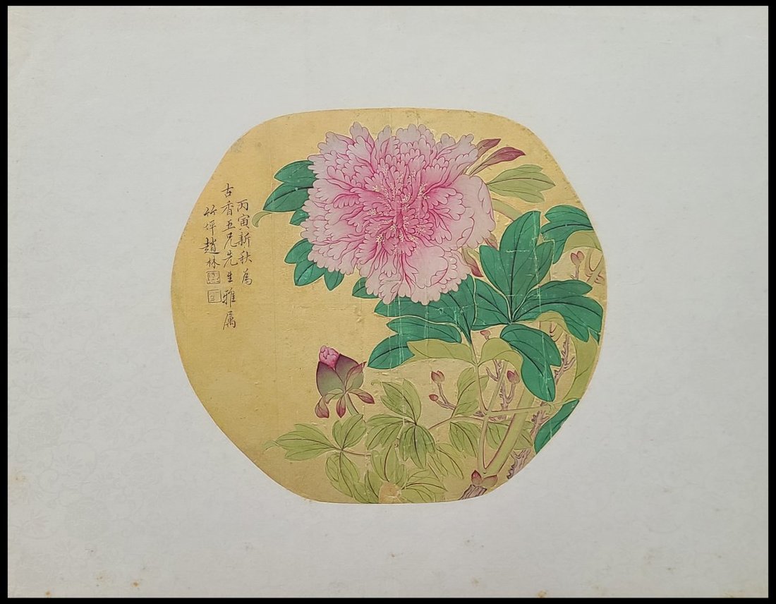 Zhao Lin and other two painters. Three flowers painting on circular fan. Painting size: 24x25.5cm Each