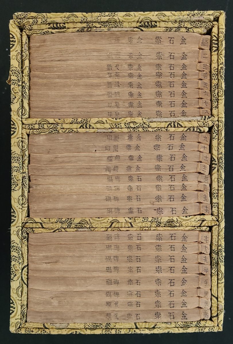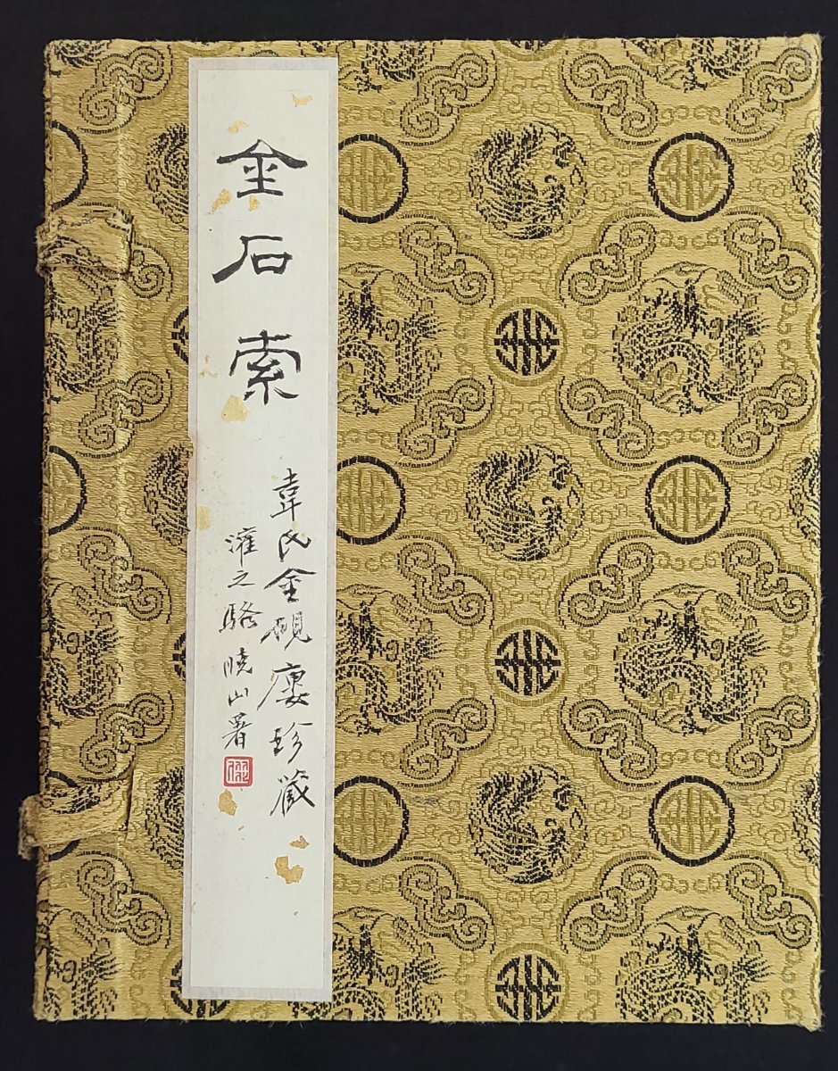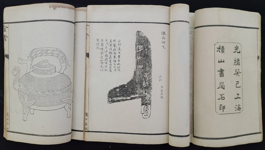 1893年(光緒癸巳年)上海積山書局石印"金石索" 全套有函二十四册, 線裝本. 函套題簽由駱曉山署, 韋氏金硯廔舊藏, 有"堅瓠室藏" 鈐印. 15x19cm