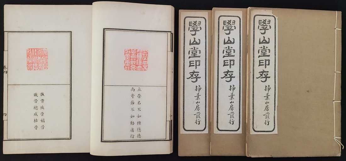 1925年(民國十四年)"學山堂印存" 四卷, 石印線裝本, 一函四册. 上海掃葉山房發行13.5x20cm