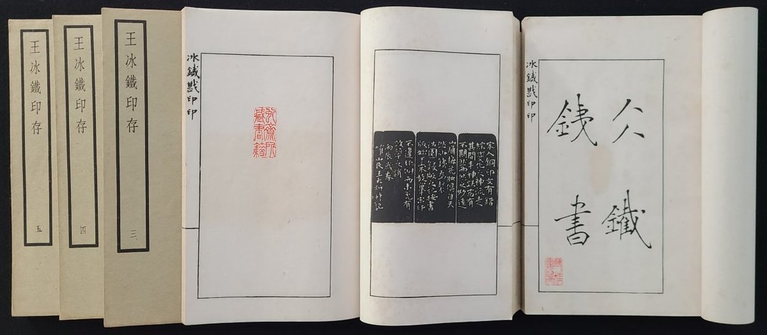 1936年再版 "王冰鐵印存" 一函五册, 紅黑色套印. 吴縣王冰鐵著, 上海中華書局發行 14x19.5cm