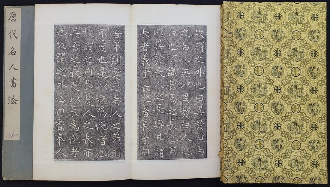 1950s-60s "Calligraphy of Celebrities in the Tang Dynasty" rubbing, two volumes in book case. 17.5x30cm