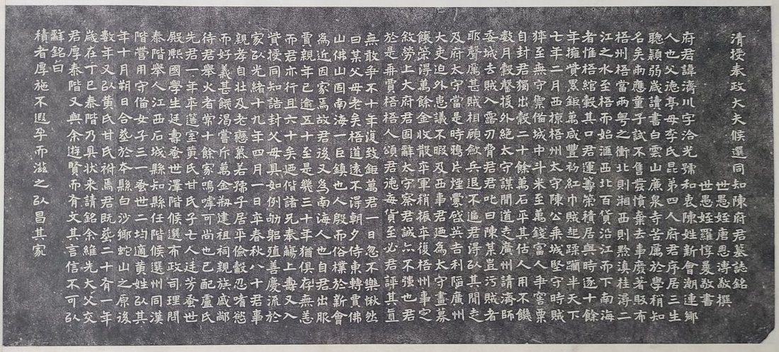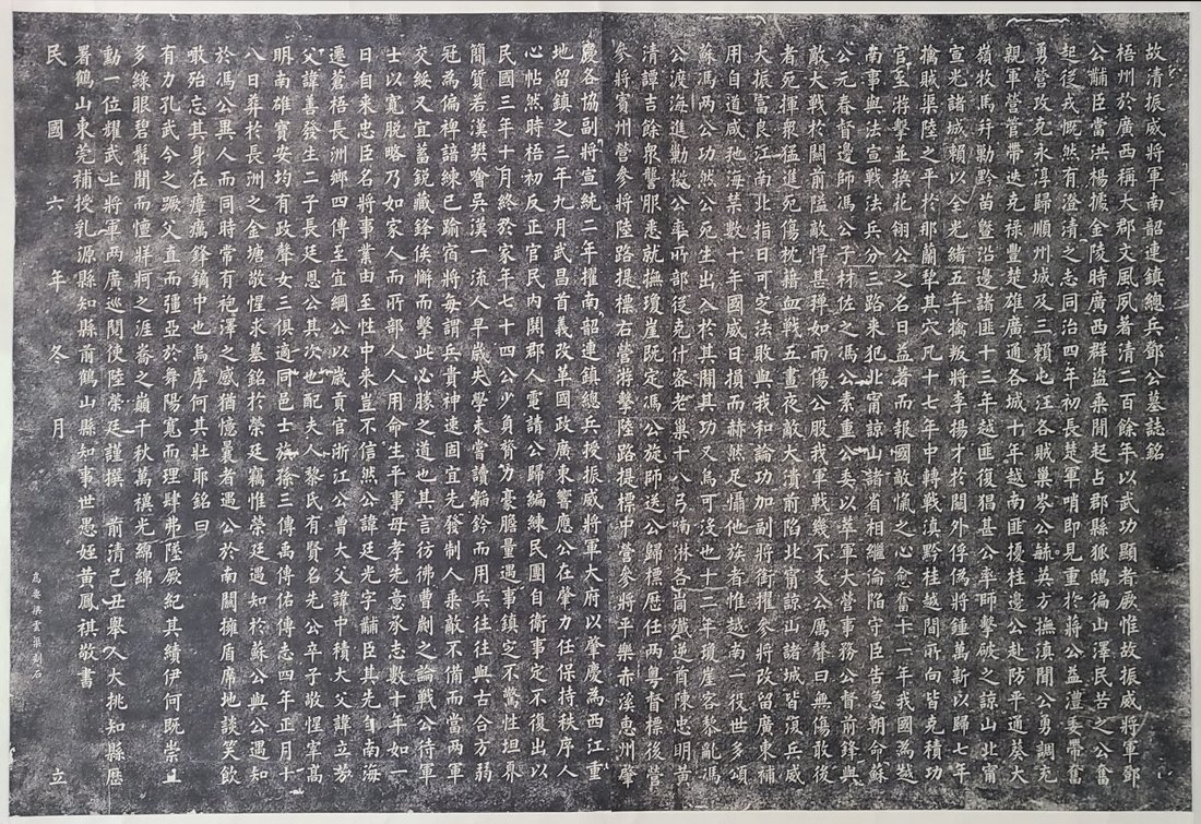 大型墓誌銘拓本三幅 (己裱); 1. 誥授奉政大夫光祿寺署正加二級晉贈光祿大夫乾生戴府君配馮太夫人合葬墓誌銘, 76x157cm; 2. 故清振威將軍南韶連鎮總兵鄧公墓誌銘, 96x142cm; 3. 清授奉政大夫候選同知陳府君墓誌銘, 48x98.5cm