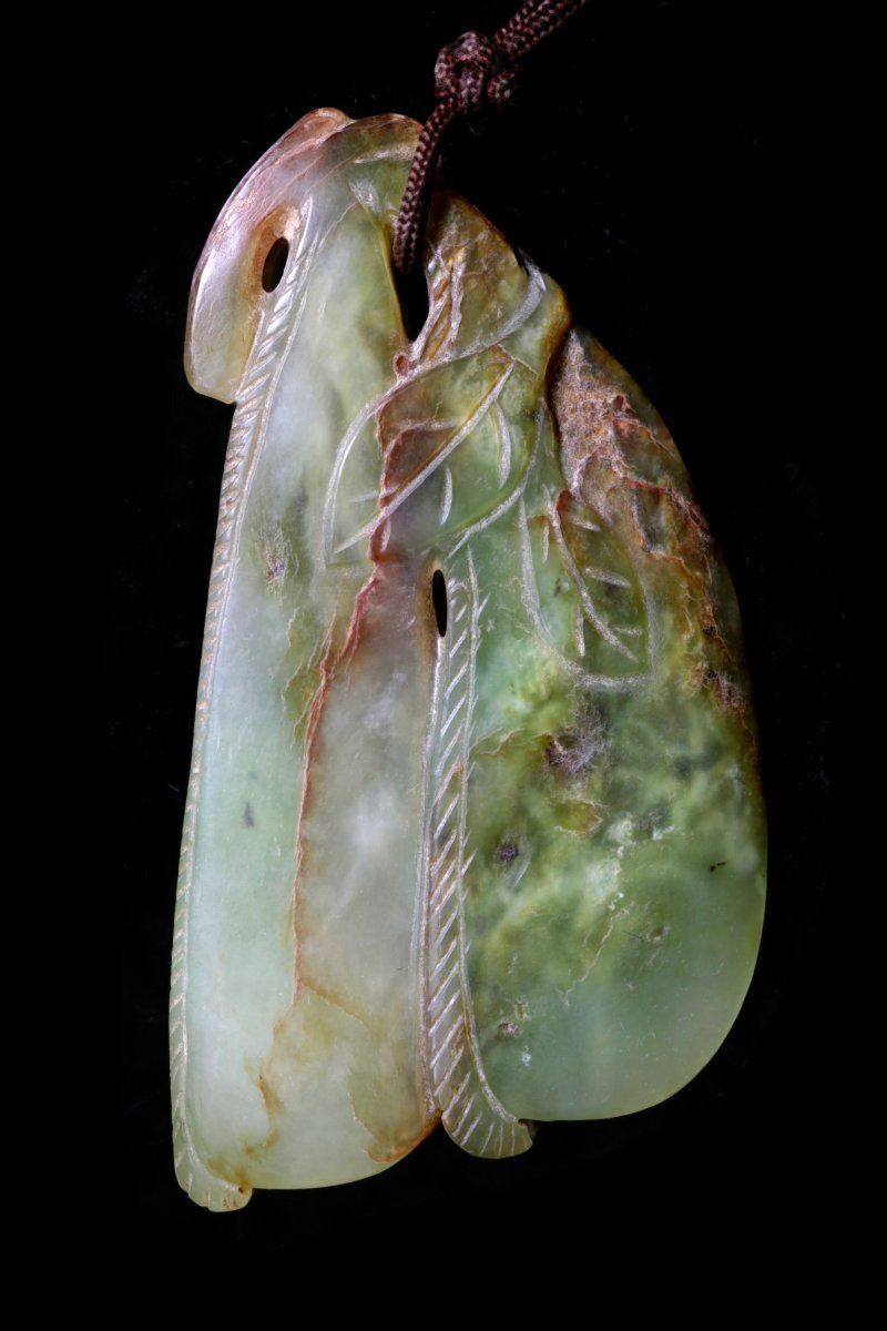 雙豆形綠玉件及綠玉牌各一件 4x7cm, 4.1x5.3cm