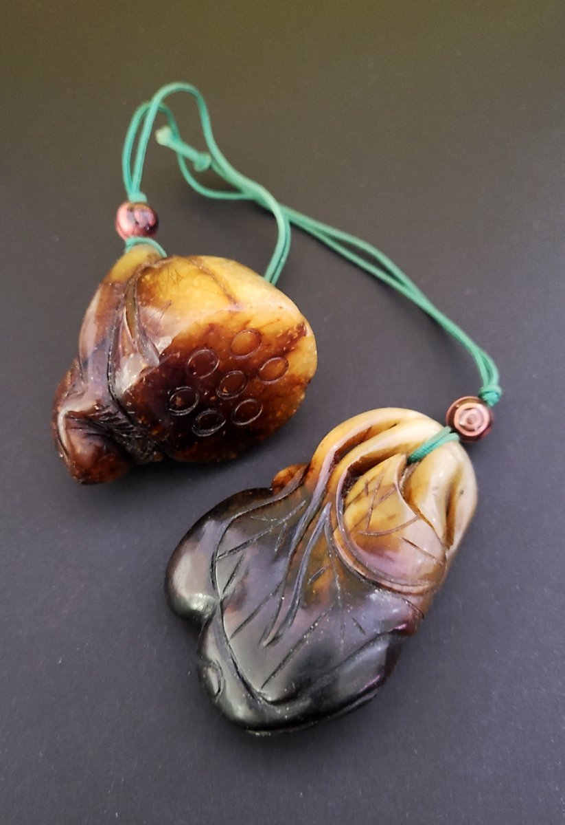 A lotus-shaped jade pendant and a gourd gourd jade pendant 3.8x4.5cm, 3.7x5.7cm