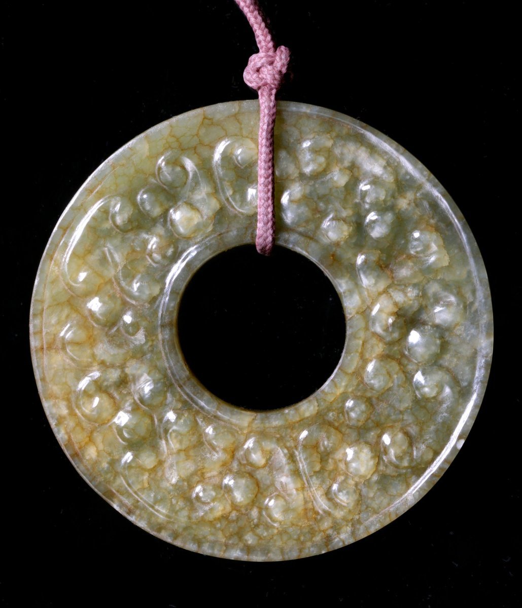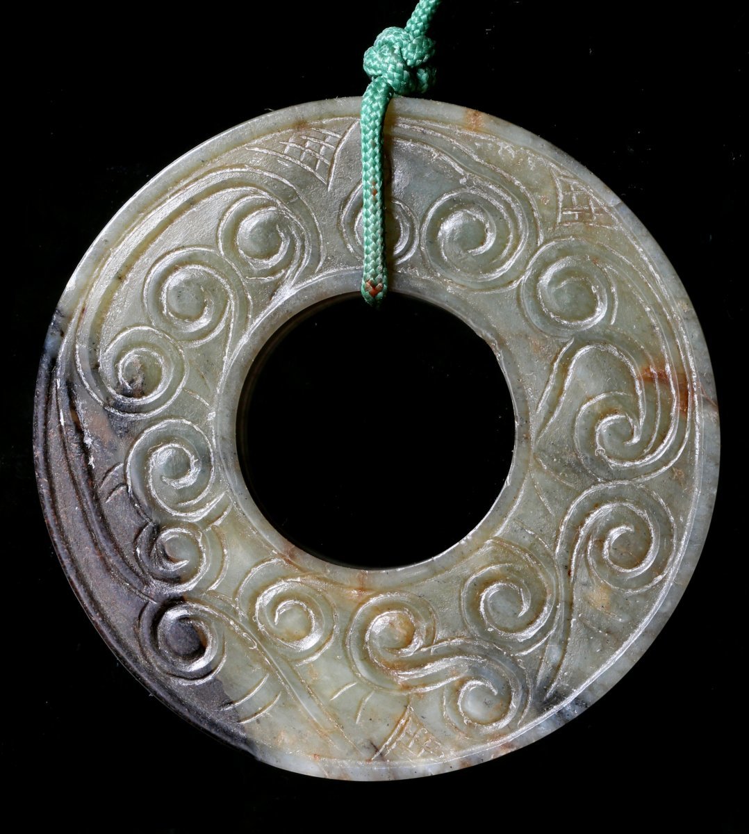雕花暗綠玉璧两件 直徑4.1cm, 4.8cm