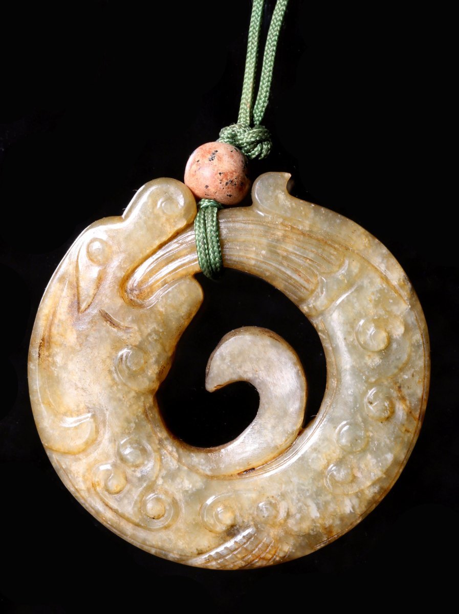Two round of jade dragons Diameter 4.7cm, 4.8cm