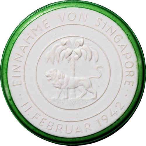 Singapore Medal, "Capture of Singapore February 1942", Porcelain medal,, 'struck' in Meissen, Germany,
