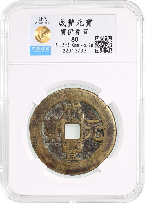 清代咸豐元寶當百,寶伊局,重46.2克,中乾80,罕見