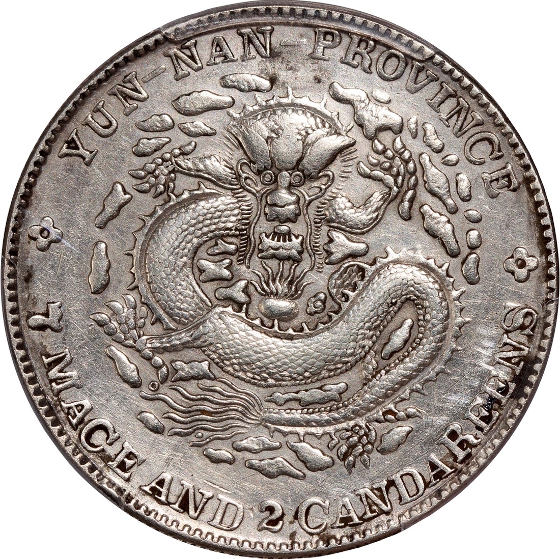 雲南省造光緒元寶庫平七錢二分,老龍,PCGS XF Details,經工具修補,#37133243