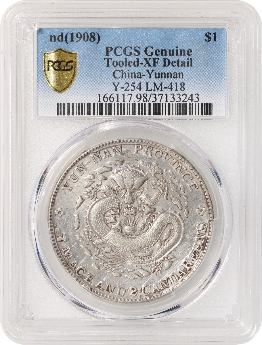 Yunnan Province silver $1, no date(1908), Guangxu Yuan Bao, (Y-254, LM-418), PCGS Genuine Tooled - XF Detail, #37133243