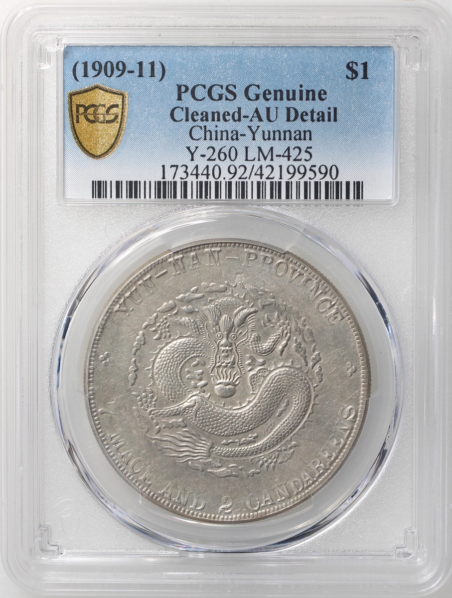 Yunnan Province, silver $1, Xuantong Yuan Bao, 'Old Dragon', (LM-425), PCGS AU Detail. #42199590