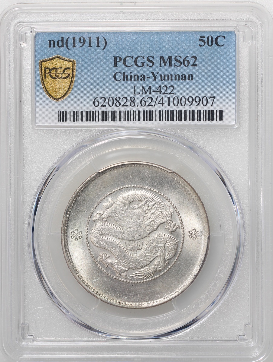 雲南省造光緒元寶庫平三錢六分一對,新龍,無日期,PCGS MS62,#41009902 及41009907