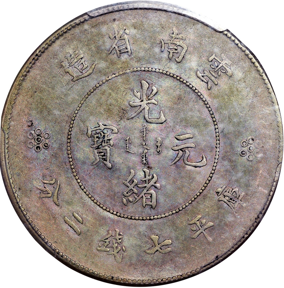 雲南省造光緒元寶庫平七錢二分,新龍,PCGS AU Detail,有清洗,#34470009