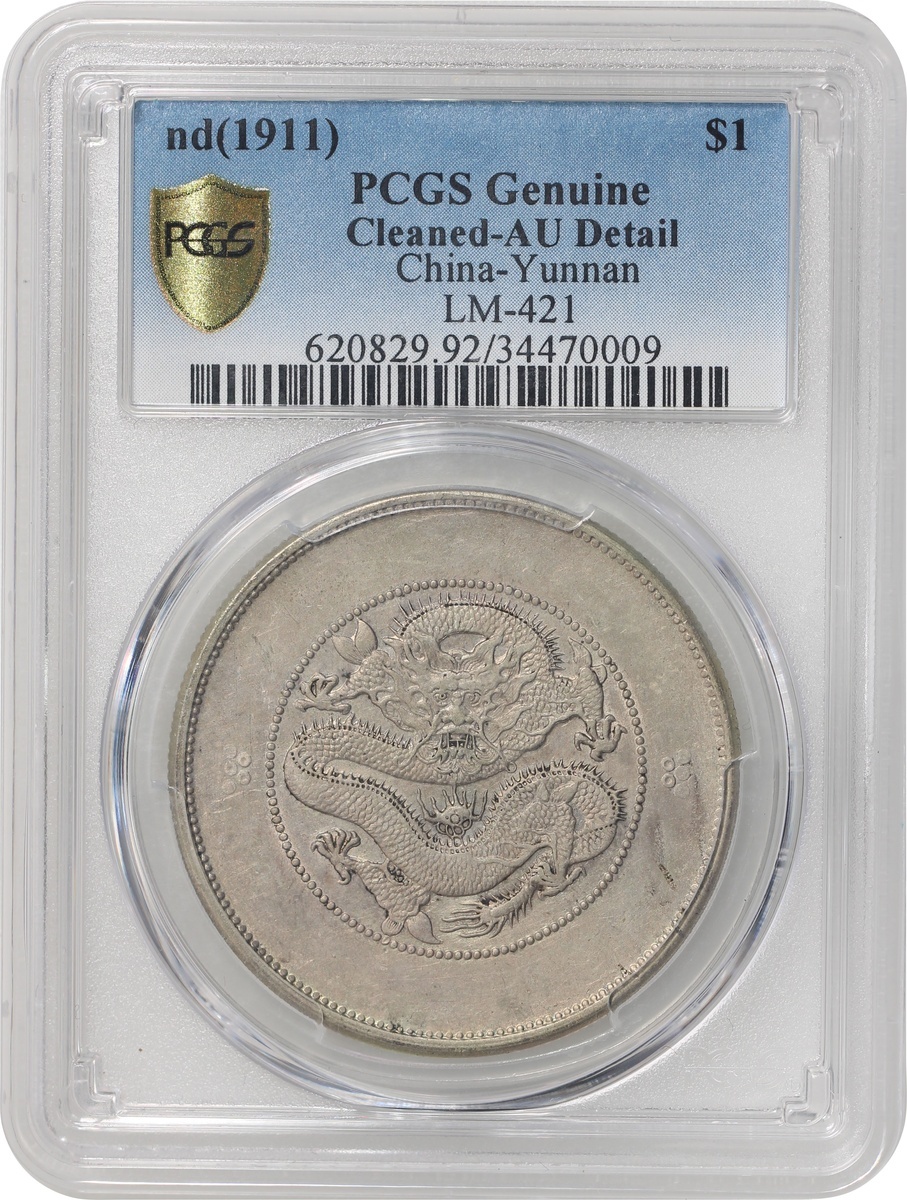 Yunnan Province, silver $1, ND (1911), 'Guangxu Yuan Bao', (LM-421), PCGS Genuine Cleaned - AU Detail, #34470009.