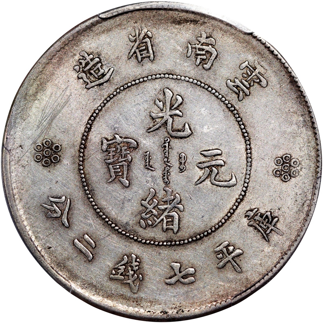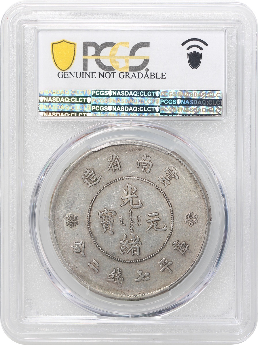 雲南省造光緒元寶庫平七錢二分,新龍四圈版, PCGS AU Detail經工具修補,#43629302