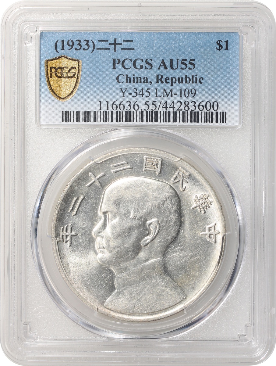 民國二十二年孫洋船洋,PCGS AU 55,#44283600,備受藏家歡迎之版別