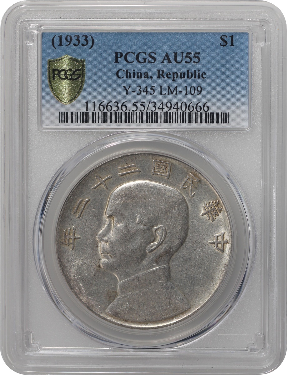 China, Republic, silver $1, Year 22(1933), Junk dollar, key date, (LM-109), PCGS AU55. #34940666