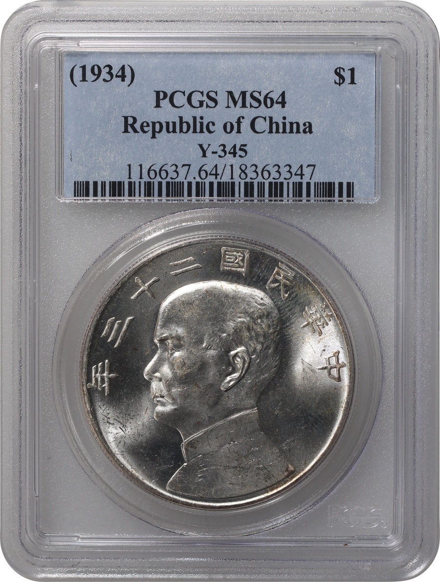 民國二十三年孫像船洋壹圓銀幣,PCGS MS64,#18363347