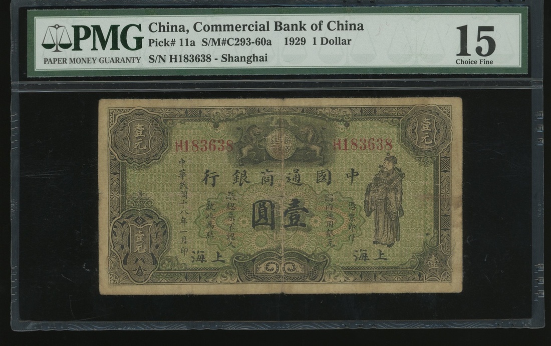 Commercial Bank of China, $1, Shanghai, Year 18(1929), serial number H183638, (Pick 11a), PMG 15 Choice Fine.