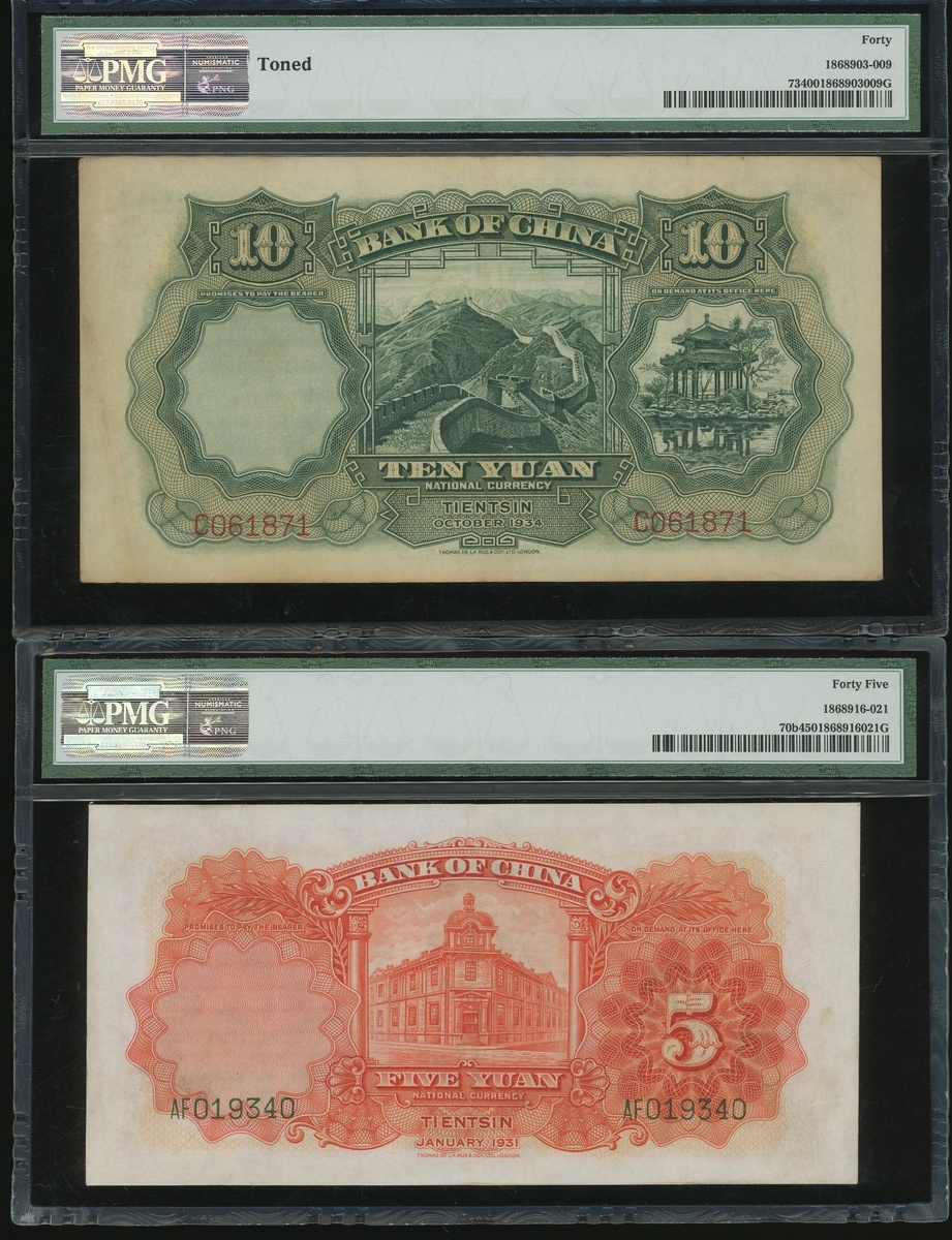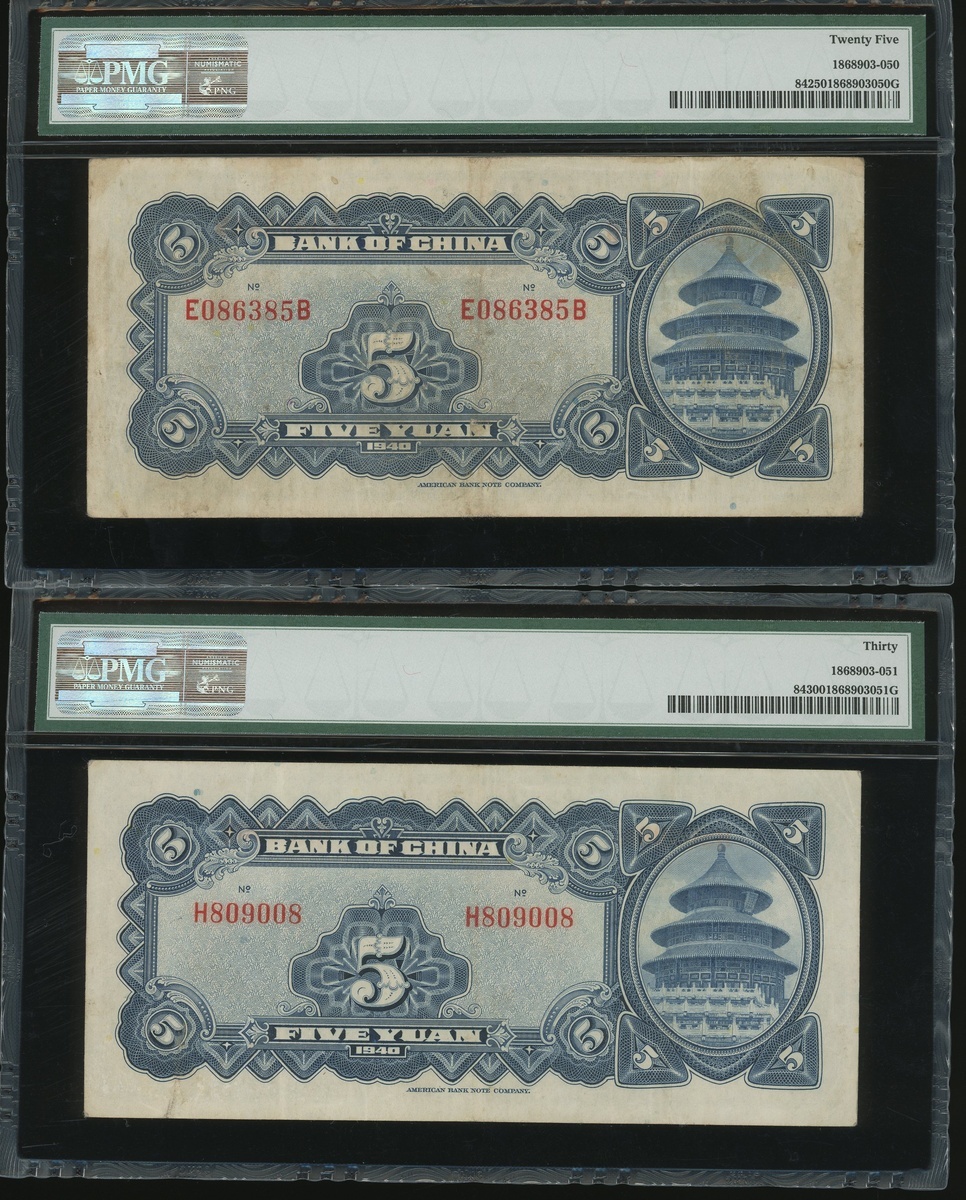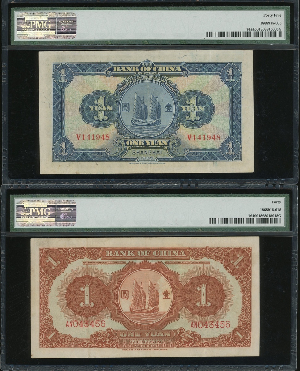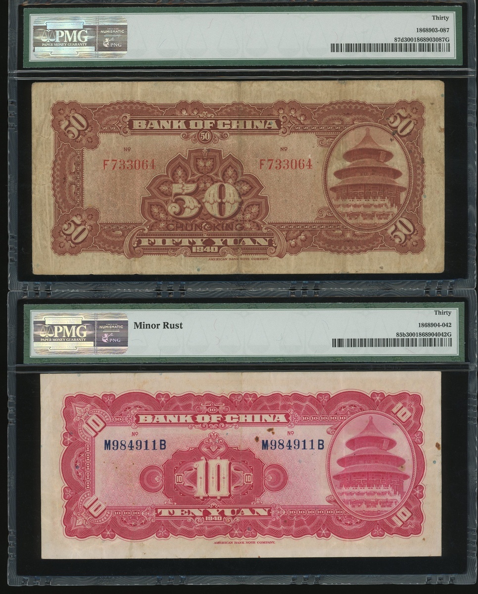 民國時期中國銀行紙幣一組14枚,1元至50元,均PMG 25-58(14)