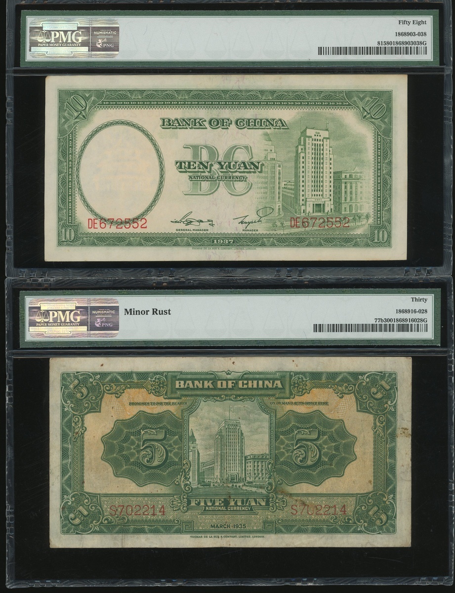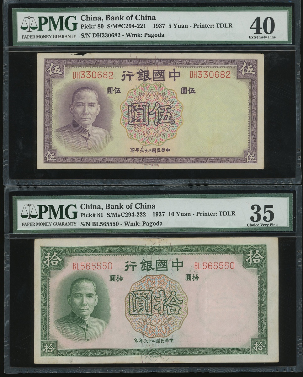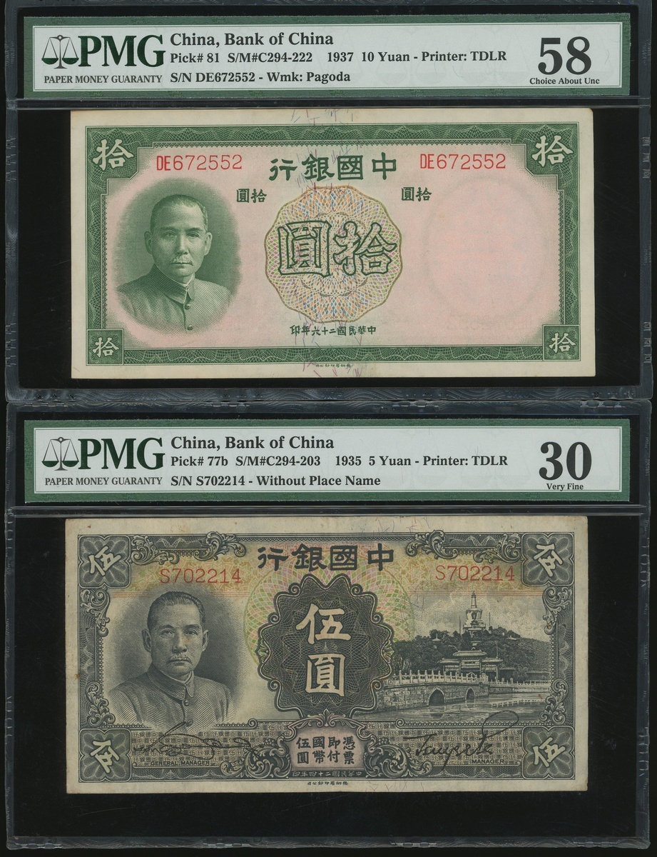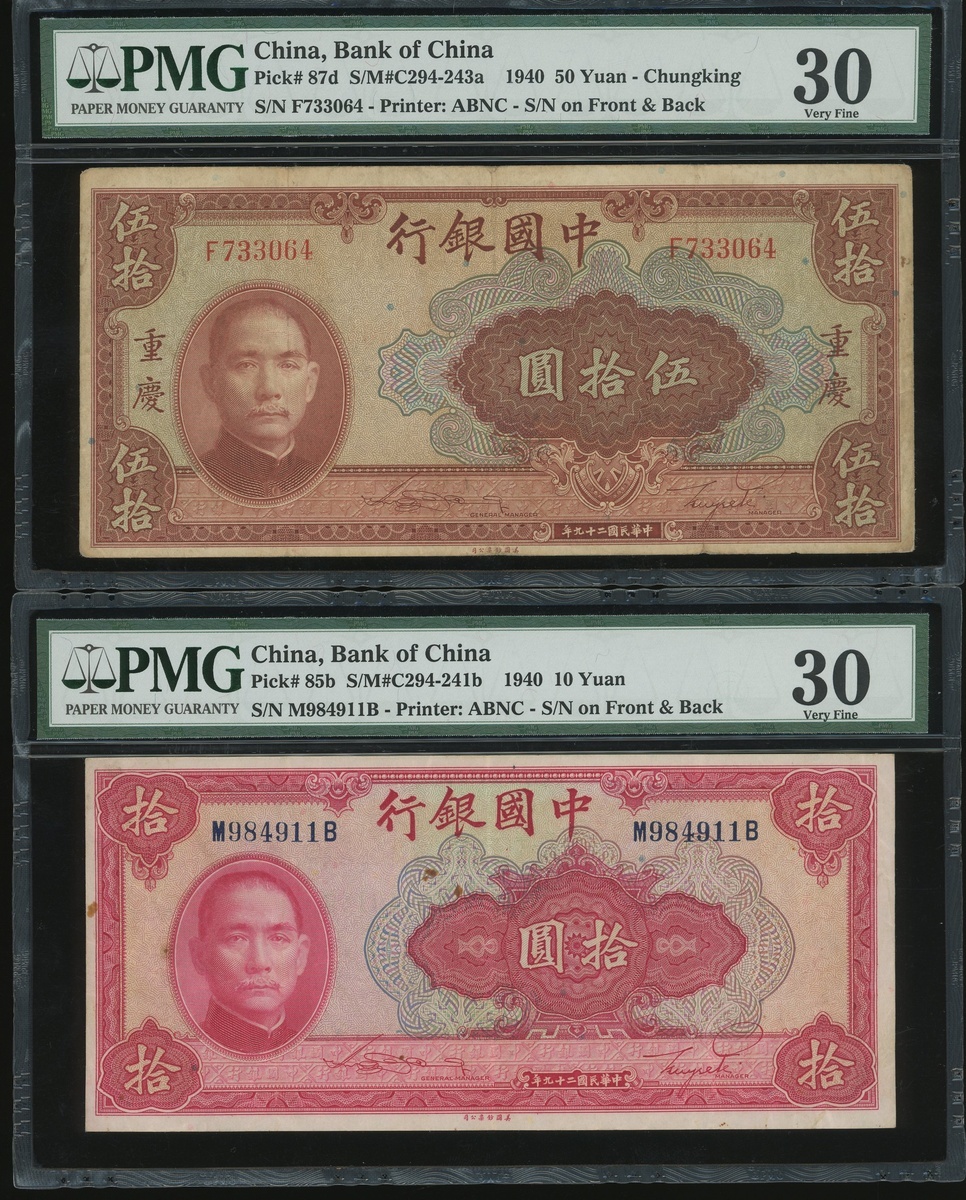 民國時期中國銀行紙幣一組14枚,1元至50元,均PMG 25-58(14)