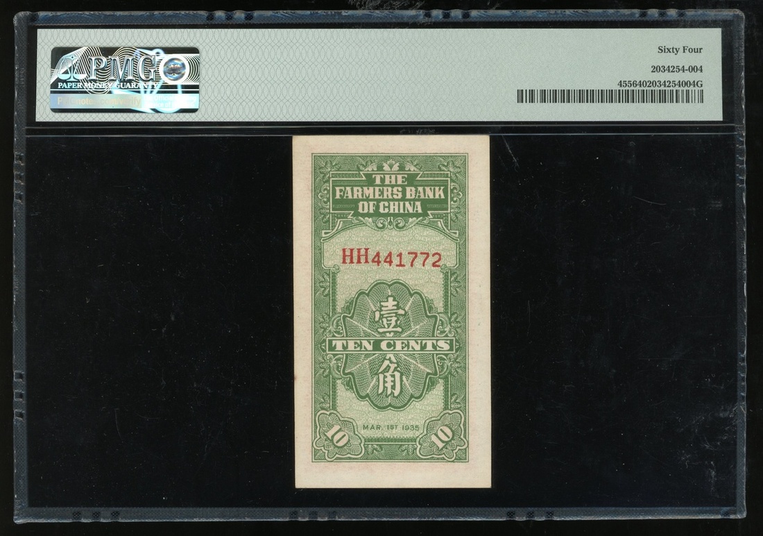 1935年中國農民銀行1角,編號HH441772,PMG 64