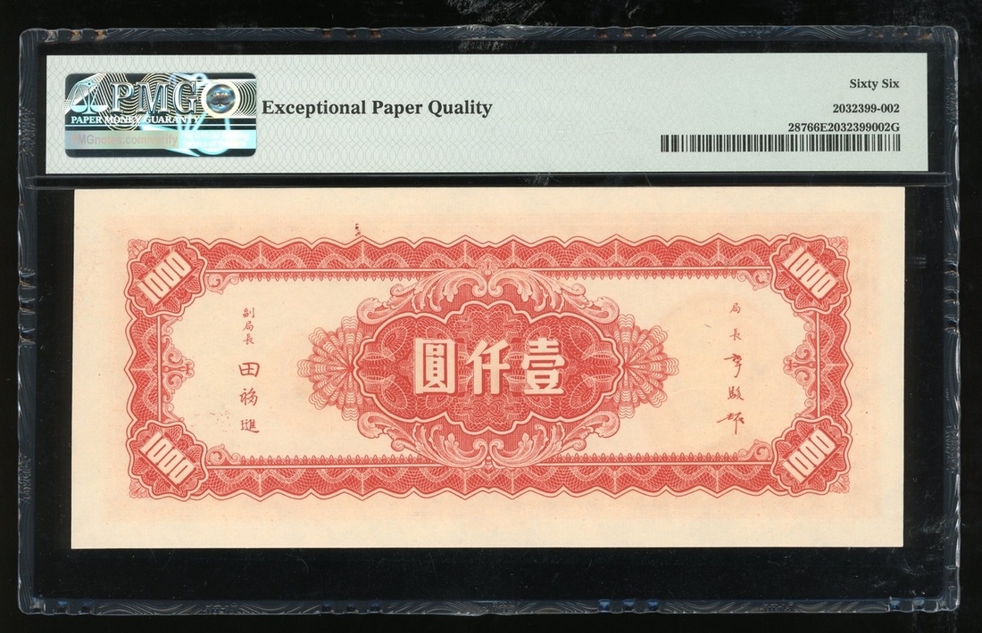 1945年中央銀行1000元,編號AQ927261,PMG 66EPQ