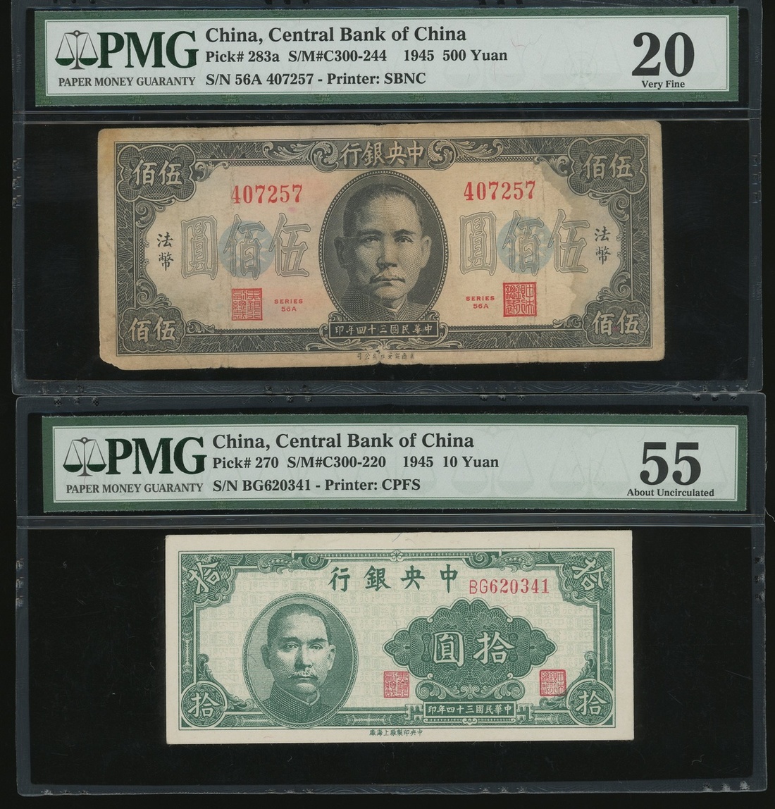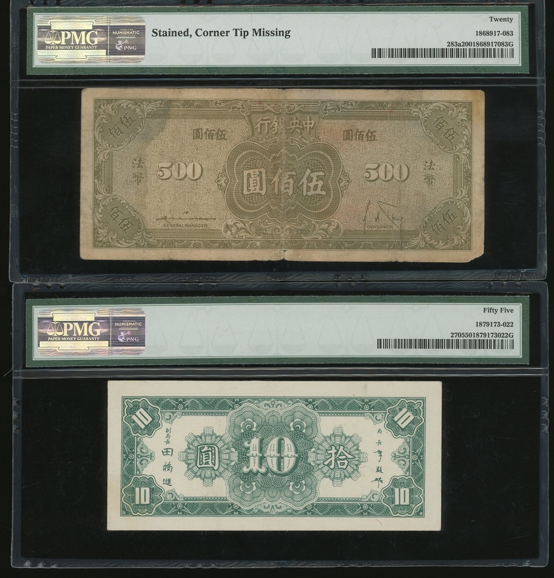 1930-1948年中央銀行關金紙幣一組13枚,1角至5000圓,均PMG 15-58EPQ(13)